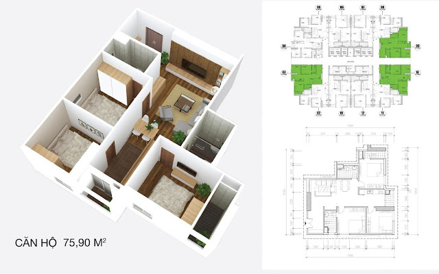 Nội thất nằm trong giá bán bao gồm: Sàn gỗ, trần thạch cao, thiêt bị wc và thiết bị nội thất cơ bản.